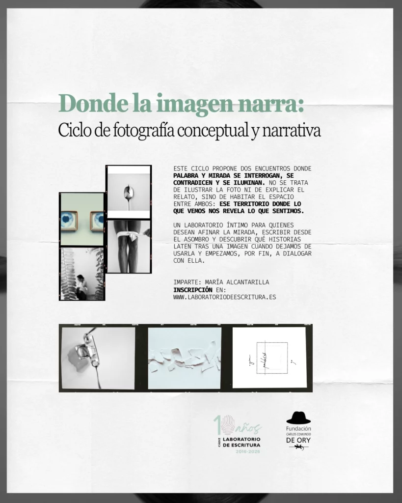 Este ciclo propone dos encuentros donde palabra y mirada se interrogan, se contradicen y se iluminan. No se trata de ilustrar la foto ni de explicar el relato, sino de habitar el espacio entre ambos: ese territorio donde lo que vemos nos revela lo que sentimos. Un laboratorio íntimo para quienes desean afinar la mirada, escribir desde el asombro y descubrir qué historias laten tras una imagen cuando dejamos de usarla y empezamos, por fin, a dialogar con ella. Sesión 1 · Ojo que escucha La imagen como punto de partida para aprender a mirar más hondo y dejar que…