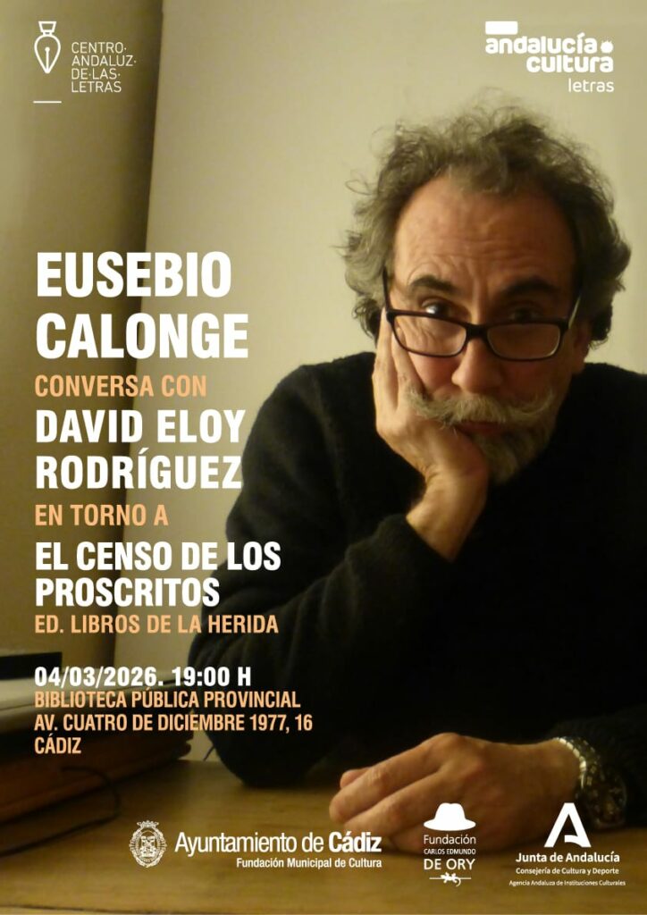 La Fundación Carlos Edmundo de Ory, en colaboración con el Centro Andaluz de las Letras, organiza un encuentro en Cádiz con el escritor y dramaturgo Eusebio Calonge en torno a su libro El censo de los proscritos (Ed. Libros de la Herida). Calonge, autor de compañía La Zaranda, conversará con el escritor y editor David Eloy Rodríguez sobre esta obra. La cita es el próximo miércoles 4 de marzo a las 19:00 horas en la Biblioteca Pública Provincial (Av. Cuatro de diciembre de 1977, 16). La entrada es libre hasta completar el aforo. Eusebio Calonge, autor de La Zaranda, compañía…