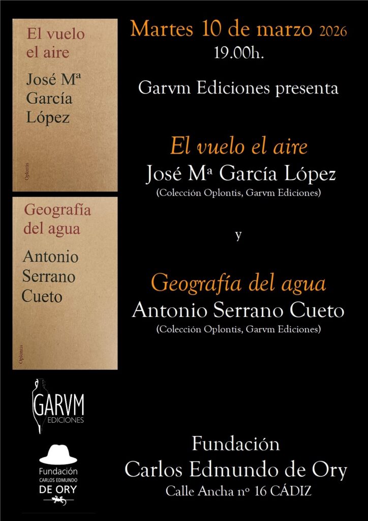 Presentación de los poemarios de José Mª García López, El vuelo el aire, y de Antonio Serrano Cueto, Geografía del agua, publicados ambos en la colección oplontis de Garvm Poesía.