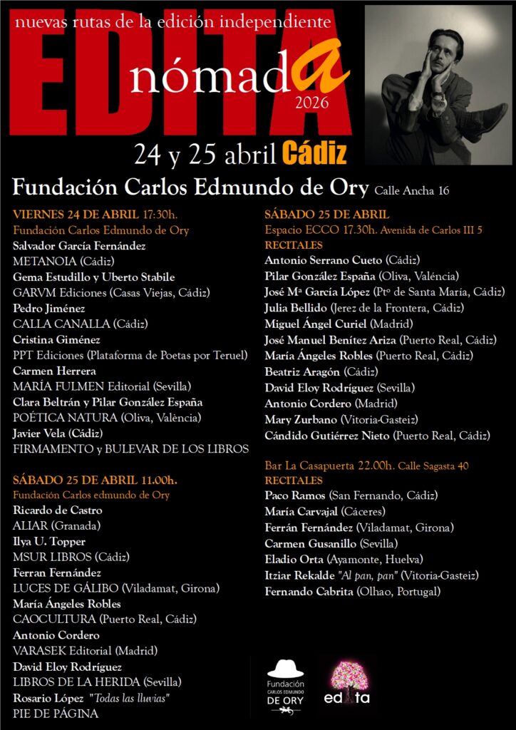 Celebramos el 103 cumpleaños de Carlos Edmundo de Ory con una edición de EDITA Nómada, el festival itinerante que se celebrará por primera vez en Cádiz.